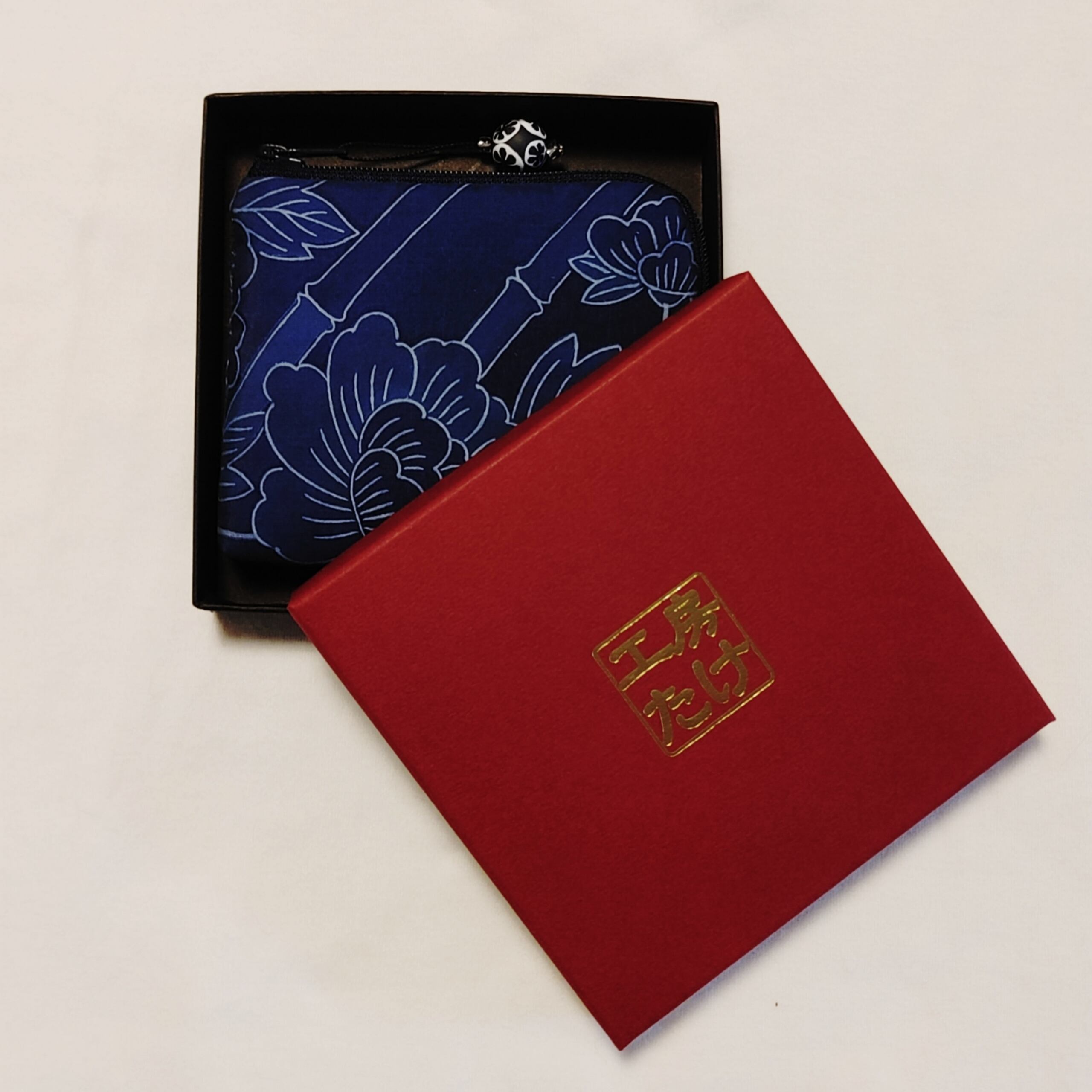 阿波藍・本藍染め 竹に牡丹柄小銭入れ