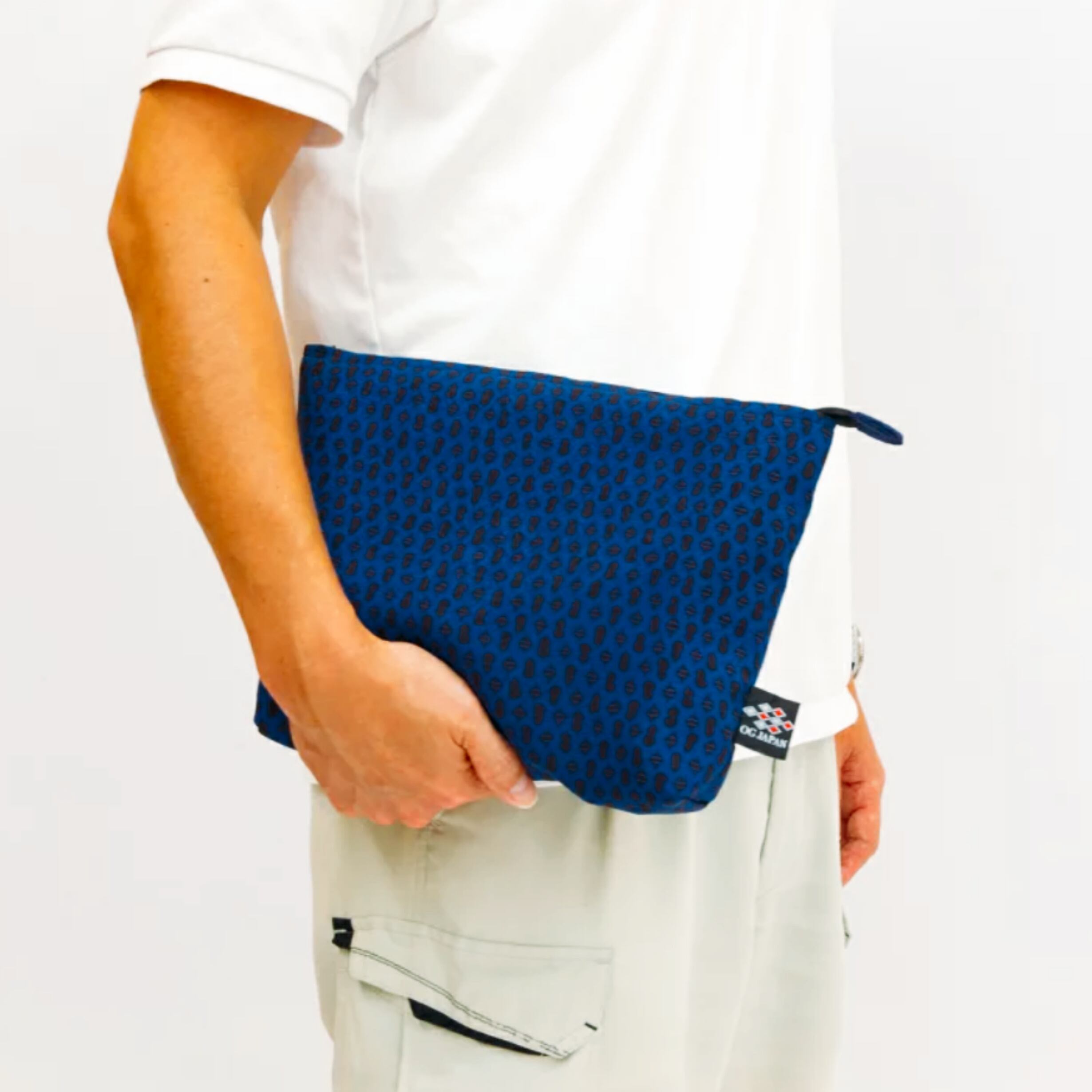 本藍染め矢野工場にて藍染め作家「矢野藍秀氏」が丹精込めて染め上げた本藍染め生地を使ったメンズポーチです。瓢箪から駒の縁起の良い柄がお洒落。