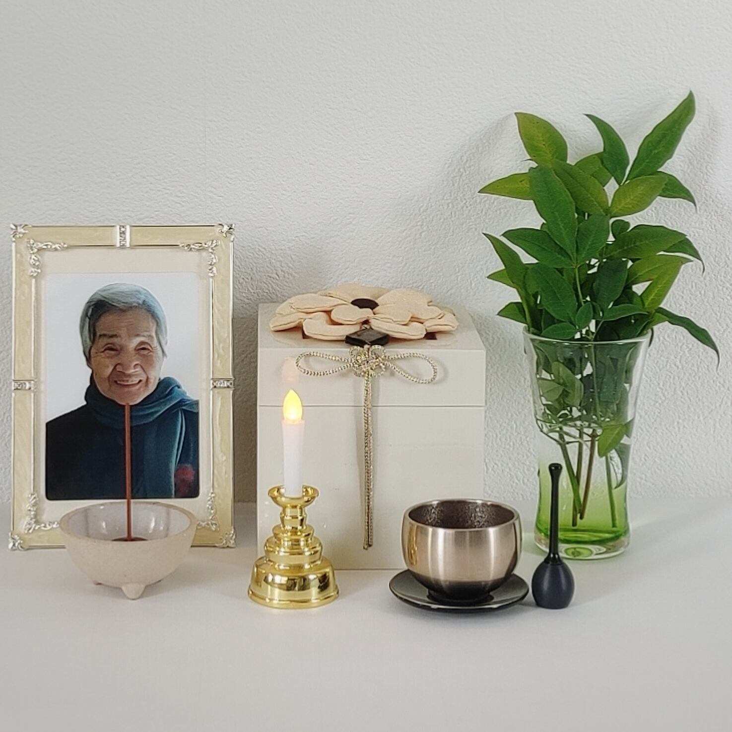 ご遺骨の一部をお骨壺に収納し、コンパクトな祭壇を組めば、場所をとらず後々の維持管理費用もかからず、かといって傍らで見守ってくれている安心感はございます。