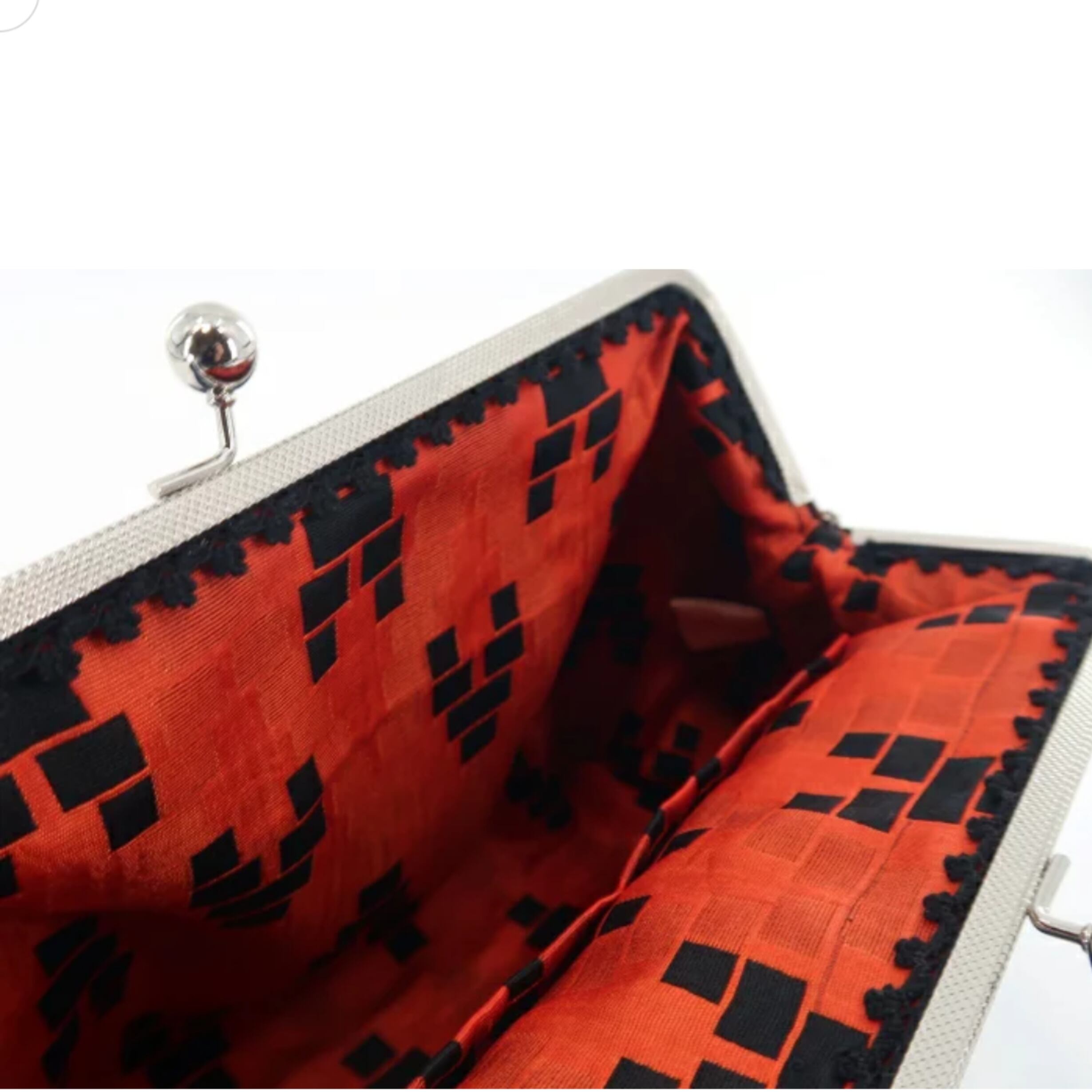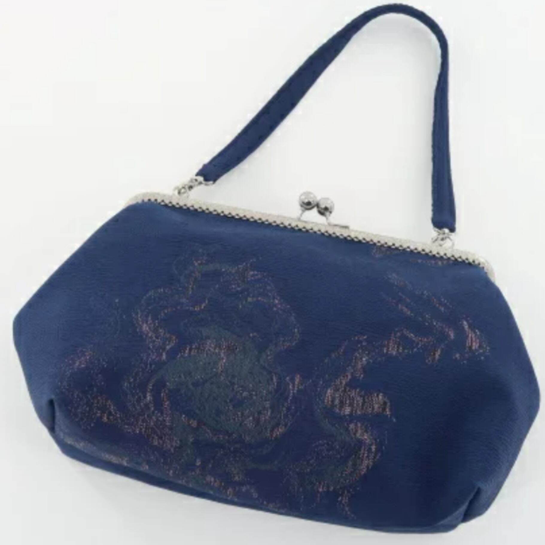 熟練職人が丹精こめて作ったがま口バッグは、ゴージャスな刺繍生地で、カジュアルにもフォーマルにもご使用いただけます。